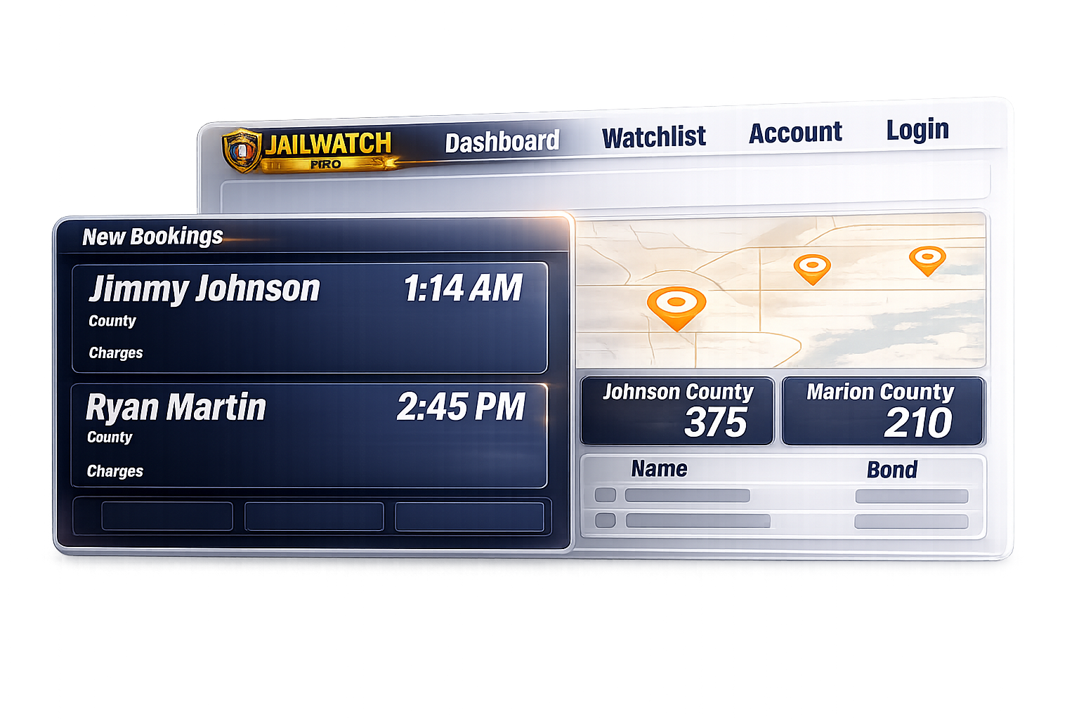 Once activated, JailWatch Pro™ continuously checks your selected counties for new bookings and pushes them straight into your JailWatch Pro™ dashboard.
